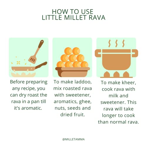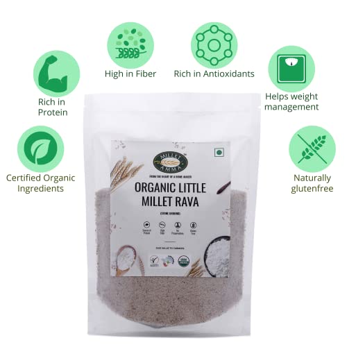 Millet Ammaâs Organic Little Millet Rava is made with unpolished Little Millets.