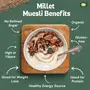 Museli- A perfect nutritious and delicious breakfast cereal.But what if we give you chocolate flavor in that. That means now Museli is not only healthy but also tasty. MilletAmmahas introduce Chocolate Museli. Thus muesli is not only a healthy breakfast alternative but also a nutritious dessert. Muesli is a ready-to-eat cereal and a popular breakfast option consisting of rolled oats fresh and dried fruits seeds & nuts. The first meal of the day is the most important one it literally breaks your night-long fast and sets the tone for the rest of the day. So however your days may be paced breakfast just can't be missed. The beauty of having muesli to kick start your day is that you receive the goodness of carbs in the form of oats and protein in the form of nuts from a single bowl. Given our hectic pace of life we do not find the time to make something healthy in the kitchen. Muesli is a quick & easy-to-make snack with the right blend of nutrition and taste packed with healthy ingredients. Packaged muesli is a loose mixture of oats wheat flakes multi-grains topped with pieces of dried fruits nuts seeds etc. It may contain honey cinnamon quinoa coconut chocolate natural fruit and other delightful flavors. You can perhaps experiment with the meal timings and there is no set of fixed rules to decide the best time to eat muesli. It is a one-dish meal and an excellent breakfast alternative however you can eat muesli at lunch or dinner considering the balanced nutritional value. Rich in fiber and proteins Muesli keeps you full for a longer duration and boosts the energy levels.