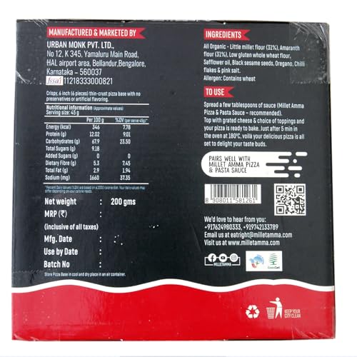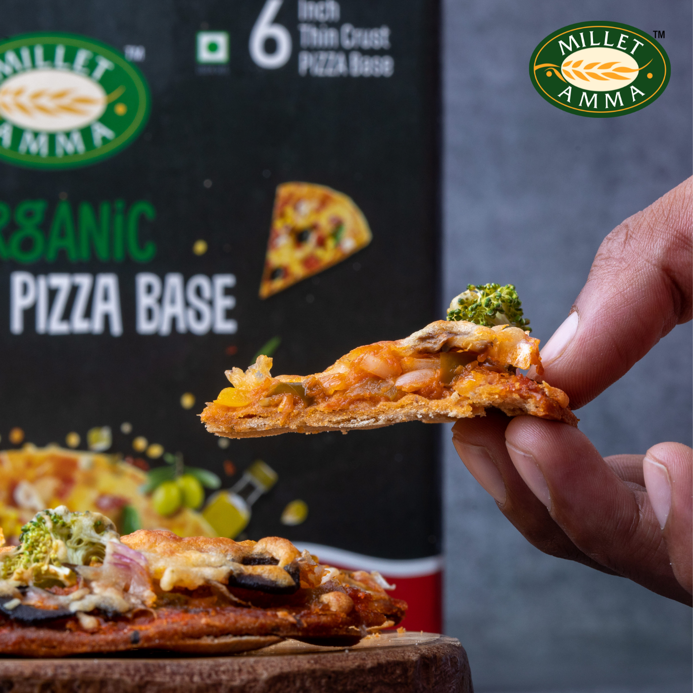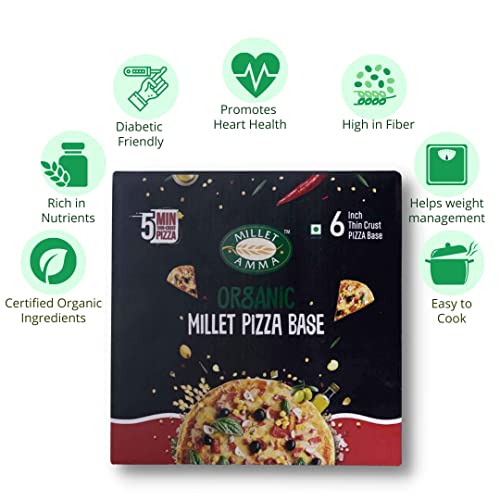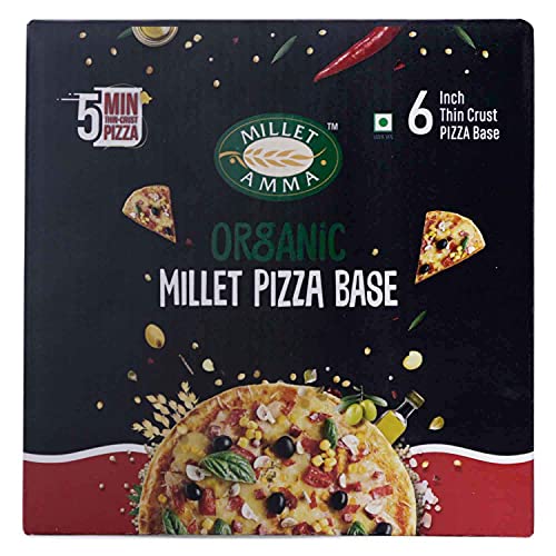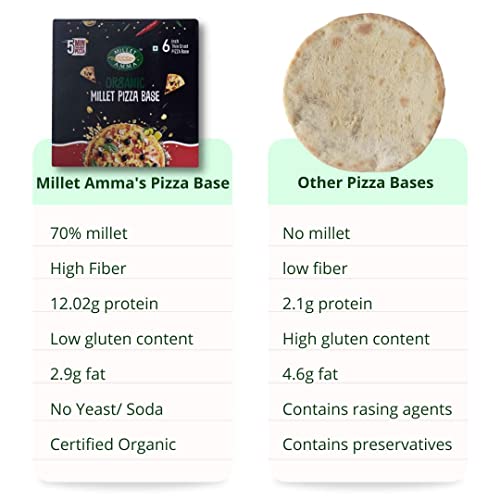 Millet Amma Organic Millet Pizza Base - 200g | 70% Millet Content | Thin Crust and Crispy | Pack of 6 Pizza Base in a Box | Ready to Cook | 100% Certified Organic | Cooks in 5 Minutes