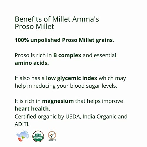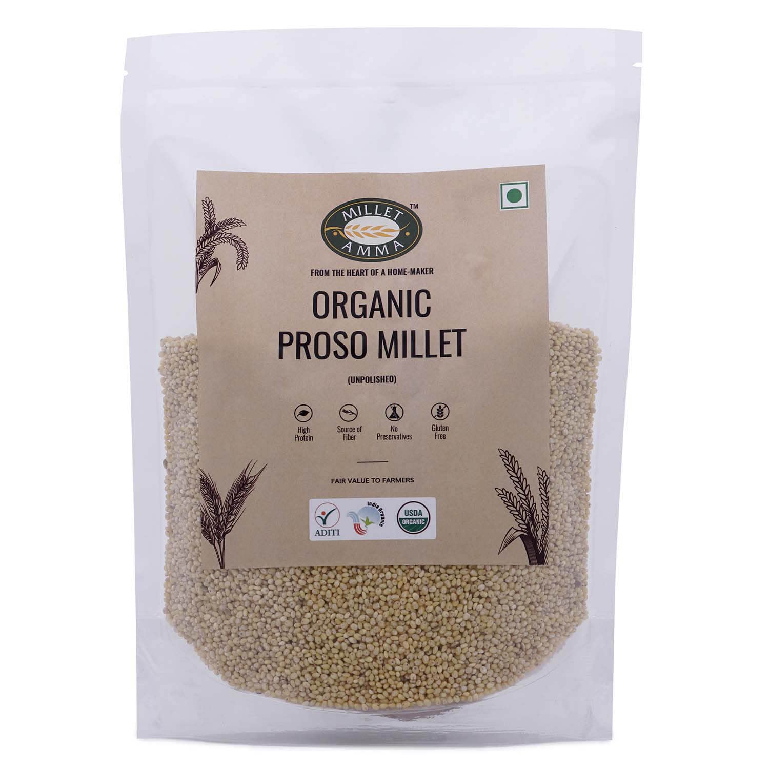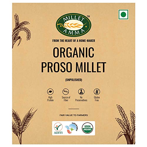 Millet Amma CERTIFIED ORGANIC Proso Millet - 1 Kg (500g x 2 Packs) | Unpolished Millet Grains| 100% Vegan, Gluten Free, Preservatives Free & Non GMO |
