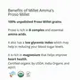 • The millet cultivated is 100% Organic and suitable for a -free diet.