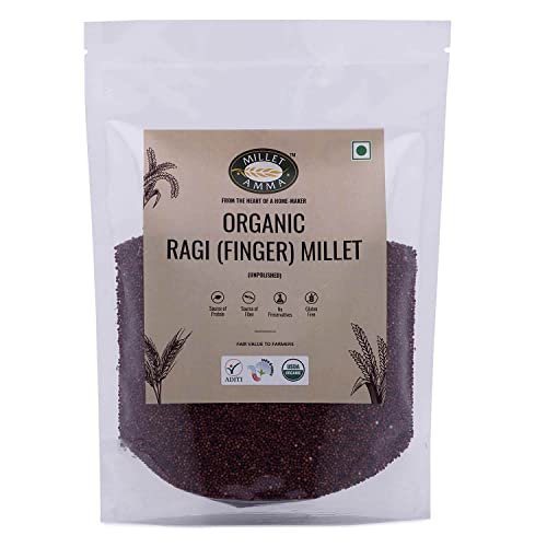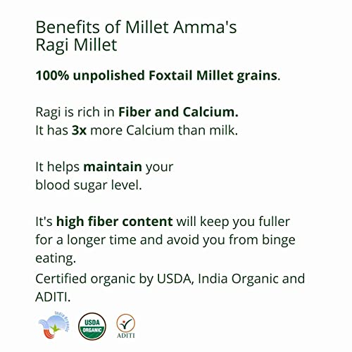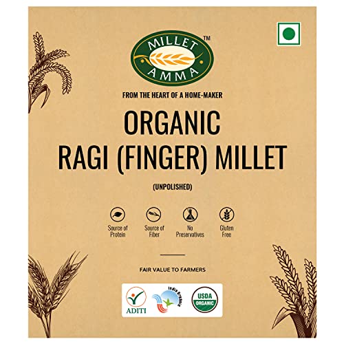 Millet Amma CERTIFIED ORGANIC Ragi (Finger Millet) - 2 Kg (500g x 4 Packs) | Unpolished Millet Grains | Rich in Calcium, Fiber, Minerals and Amino Acids |
