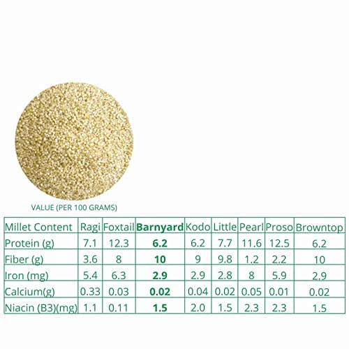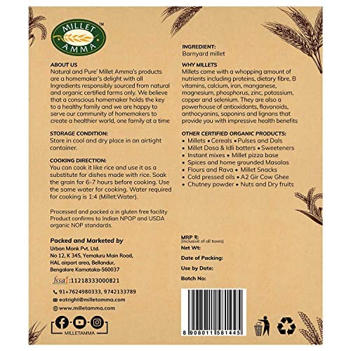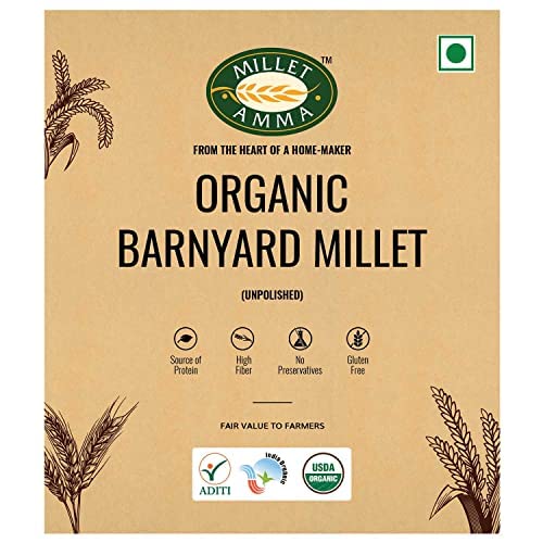 Millet Amma Unpolished CERTIFIED ORGANIC Barnyard Millet Grains| 1 Kg Pack | (Udalu | Kodisama | Khira | Swank | Kuthiraivally) Rich in Fibre Than Rice & Dietary Fibre,High Protein,Gluten Free |