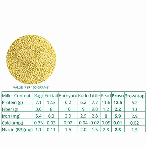 Millet Amma's Organic Proso Millet- Millet Amma's Organic Proso Millet contains high levels of lecithin. These unpolished Proso Millets are rich in B Complex vitamins and essential amino acids. Proso Millet has a low glycemic index and in controlling your levels. The millet cultivated is 100% Organic and is suitable for a diet. Enjoy your favourite dishes with this Organic Proso Millet with love from the of a home-maker. Unpolished Proso Millet How to store? Store your favourite Organic Proso Millet at a cool and dry place. It has a shelf life of 6 Months. Proso Millet is nutritious and tasty. It has an all around egg-formed prolific floret and its frame is hard and gleaming and solidly encases the seeds when it is shed. It comes in different tones from tanish dark through olive brown orange-red brilliant and light cream. The wheat of Proso millet contains fundamental supplements that are fundamental for a sound eating routine and is likewise a brilliant wellspring of fiber! It is without and has a lot of carbs protein niacin (Vitamin B3) and unsaturated fats. Aside from these supplements it itionally contains fundamental minerlike phosphorus manganese and magnesium. Aside from these it is likewise a rich wellspring of fundamental phosphorous. It likewise gives supplements for example iron zinc fiber and vitamin B6 which are fundamental for our everyday working. Might it be said that you are searching for a method for recovering your wellbeing the regular way? Then at that point you should give a shot our handpicked grouped item that is made for people who want a sound way of life.