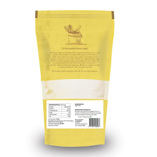 Nutty Yogi 100% Gluten Free & Organic Ragi Flakes (Finger Millet) | Ragi Poha | Ready to Cook Flakes | Unflavored & Toasted Alternative to Oats | Healthy Snack - 400 gm (Pack of 3)
