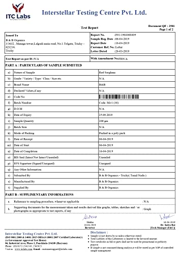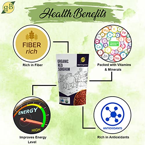 B&B Organics Red Sorghum (500 g) ( Whole Grain) (Cholam | Red Cholam | Sivappu solam | Jowar | Jola | Jawar | Jonna | Low Gi) (Lab Test Report Attached)