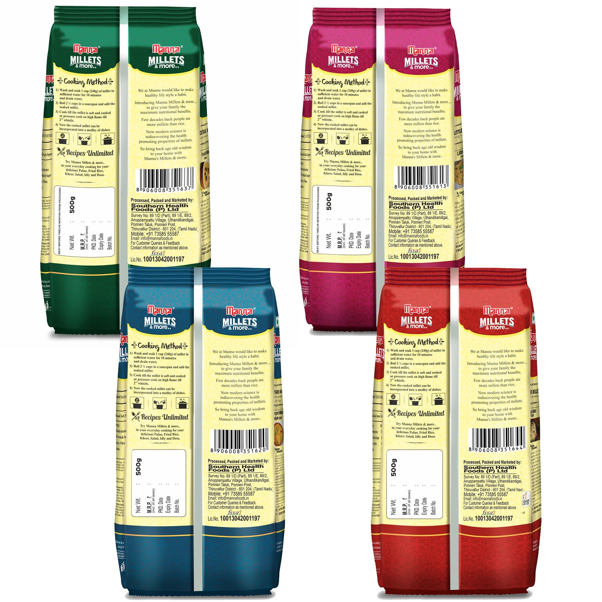 Manna Millets - Natural Grains Combo Pack of 4 | Foxtail 500g Kodo 500g Little 500g Barnyard 500g | Native Low GI Millet Rice | Nutrient Powerhouse High Protein & 100% More Fibre Than Rice