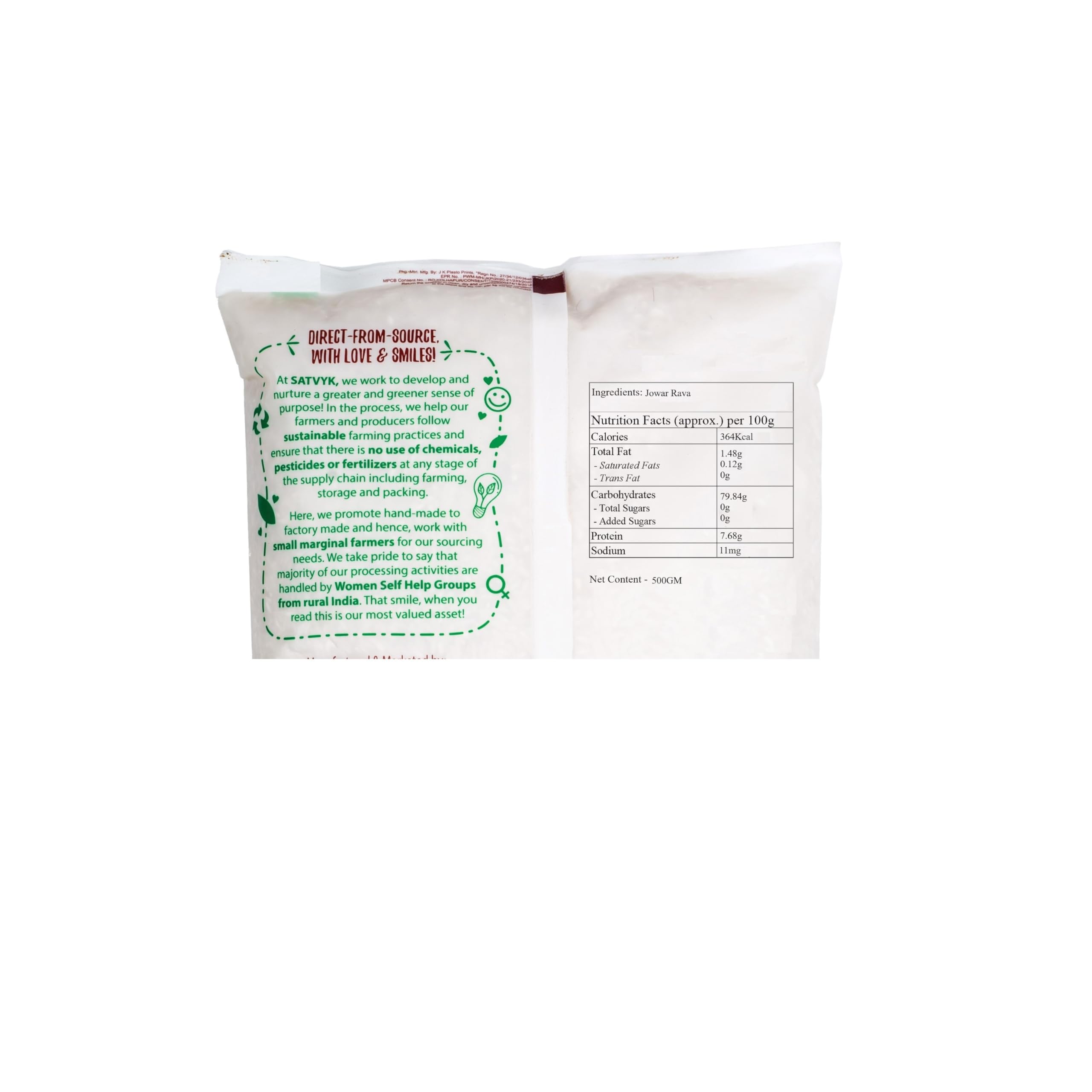 S Siddhagiri's SATVYK THE HEALTH re STORE Organic Jowar Rava (500gm) - Unpolished Sorghum Millet Suji | Stoneground Millet Rava Upma | Jowar Millet Upma Rava | High Plant Protein & Fiber