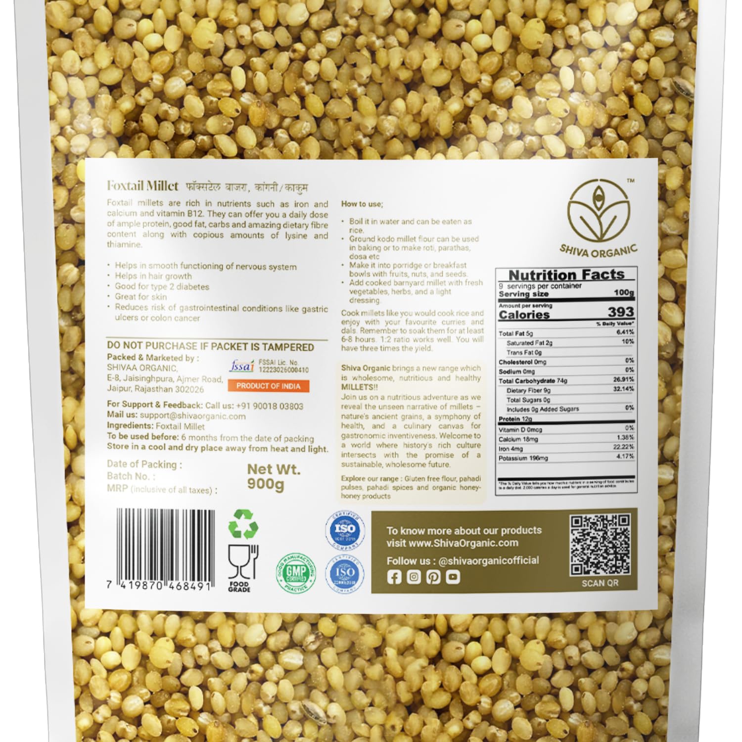 Shiva Organic Unpolished Foxtail Millet - 900 g | High Protein Gluten Free | Low Calories Low GI | Sourced organically