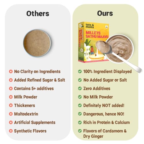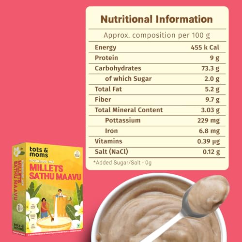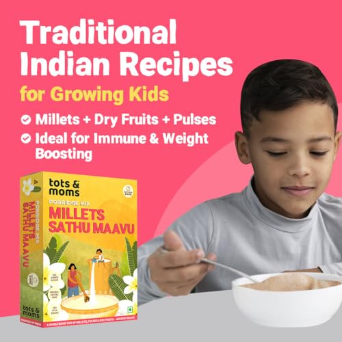 HomeGroceryCookingThe Millet StoreTots & Moms Multigrain Millet Cereal - Millet Sathu Maavu | No Sugar No Salt | Made with 4 Millets, Pulses & 15% Dry Fruits, No Preservatives - Healthy Weight Gain Porridge Mix | Pack of 3-200g Each