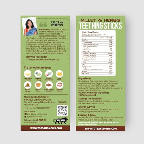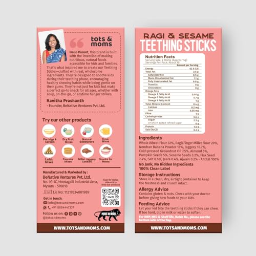 When kids start teething they want to chew on anything to soothe their gums. Many parents unknowingly give plastic teethers or store-bought teething sticks filled with maida white sugar and preservatives—which can be harmful to their tiny tummies. That’s why we created Teething Sticks—firm enough to comfort itchy gums easy to hold and chew and made with wholesome natural ingredients. Not just for kids these are a healthy snacking option for all ages!