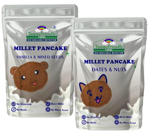 Tummy Friendly Foods Aluminium-Free Pancake Mixes | Millet Pancake Mixes with Chocolate, Dates & Nut Flakes | Healthy Organic Pancake Mix for Kids Babies Toddlers without Maida | Healthy Pancake Mixes 2 Varieties 150g Each