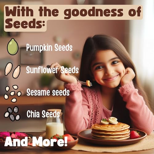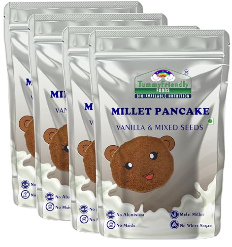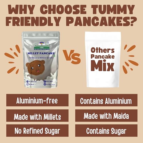 Tummy Friendly Foods Aluminium-Free Vanilla Mixed Seeds Pancake | Healthy Instant Breakfast Mix | Millet Pancake Mix For Kids Babies Adults with Super-Grains and super Seeds like Flax seeds Sesame Seeds Pumpkin Seeds Watermelon Seeds and SunFlower Seeds | Available in Baby Trial Packs too | 50g 4 Variants Introducing our delectable Millet Pancake Mix with Vanilla and mixed Seeds a wholesome treat that satisfies your cravings while nourishing your body. Perfect for breakfast or anytime you need a sweet pick-me-up our mix is carefully crafted with premium ingredients to ensure a delightful culinary experience. Here's why our Pancake Mix is a must-have: Indulge your taste buds guilt-free with our heavenly Seeds Pancake Mix the perfect blend of decadence and health. Crafted with wholesome ingredients our healthy pancake mix ensures you start your day right. Specially formulated for kids and adults alike our Millet pancake mix is a delightful twist on a classic breakfast staple. Each bite bursts with rich Seeds making breakfast an exciting affair for the whole family. Our pancake mix powder is not just convenient but also nutritious packed with essential nutrients to fuel your morning. Made with premium ingredients it's the perfect instant breakfast mix for busy mornings. With our pancake mix powder you can whip up fluffy Millet pancakes in minutes making mornings a breeze. Say goodbye to bland breakfasts and hello to a delicious slurp-worthy start to your day!