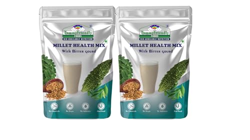 Tummy Friendly Foods Organic Health Mix With Bitter Gourd Methi Moringa and Curry Leaves 300g (100g each pack) | Organic Multigrain Health Mix Drink | Made of Cereals Millets Pulses Nuts & Seeds | Rich in Protein Iron Zinc Healthy Fat and Dietary Fiber No Chemical fortification Organic Multigrain Health Mix DrinkRich in Protein Iron Zinc Healthy Fat and Dietary Fiber. Made of Sprouted Ragi SPROUTS THE LIVING SUPER-FOOD ON THE PLANET. Sprouts are rich in Vitamins Minerals Fibre Anti-oxidants Enzymes Amino-acids and Essential Fatty Acids. When sprouted these little grains & pulses germinate into Baby plants. These Baby plants carry the all nutrients to grow into big plants. Easy to digest