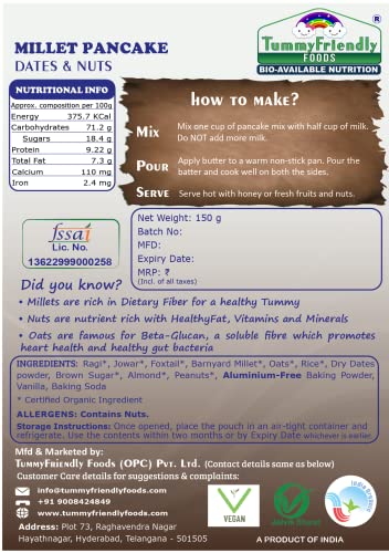TummyFriendly Foods Aluminium-Free Dates and Nuts Pancake Mix | Healthy Organic Millet Pancake Mix For Kids Toddlers Without Maida | Healthy Instant Breakfast Mix No Maida No White Sugar | 150g