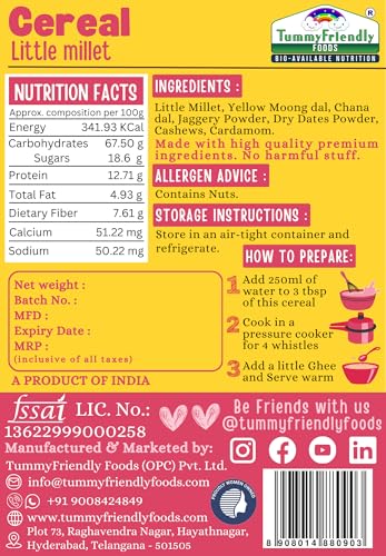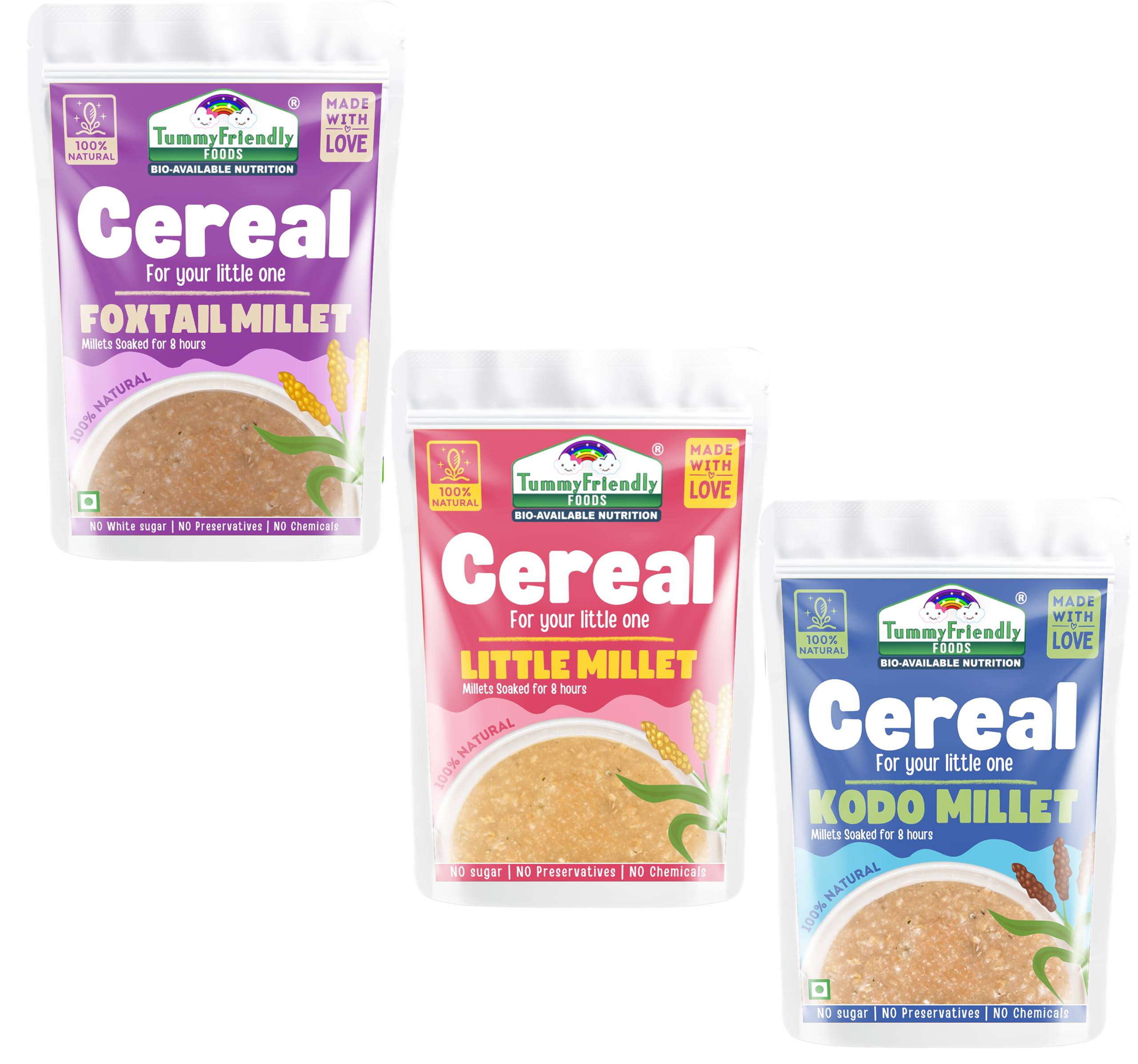TummyFriendly Foods Foxtail Millet Little Millet & Kodo Cereal for baby Toddler kids 2 year old | Baby food for 2+ year old | Maximum Nutrition From Real Food. Available in Trial Baby Packs too. 900g (300g each). Introducing our Organic Multi Grain Health Mix Powder - the ultimate health drink for kids! Crafted with care and packed with goodness this nutritious blend is specially formulated to provide essential nutrients for growing children. Say goodbye to sugar worries! Our health drink for kids without sugar offers a healthy option for parents seeking wholesome alternatives. Made with natural ingredients it's a deliciously healthy choice that kids will love. Created with the well-being of children in mind our health mix for kids is homemade with love. We understand the importance of nourishing your little ones with the best which is why our blend is free from artificial additives and preservatives. Suitable for ages 2-6 years our health mix for kids malt is designed to support their growth and development. With a rich combination of grains it's a powerhouse of nutrients that helps fuel their active lifestyles. Looking for a Healthy Milk Mix powder for kids? Look no further! Our Health mix for kids is the perfect solution. Packed with vitamins and minerals it's an easy and convenient way to ensure your child gets their daily dose of goodness. Make the switch to our Organic Multi Grain Health Mix Powder today and give your kids the gift of health and vitality. With every sip they'll be nourished energized and ready to take on the world!