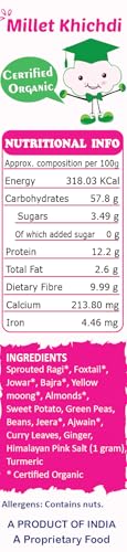 This millet khichdi is mixed with vegetables,there is no preservatives.its very easy to digest.now my baby can have a happy meal filled with protein and goodness of millet. Best product for babies,go for it