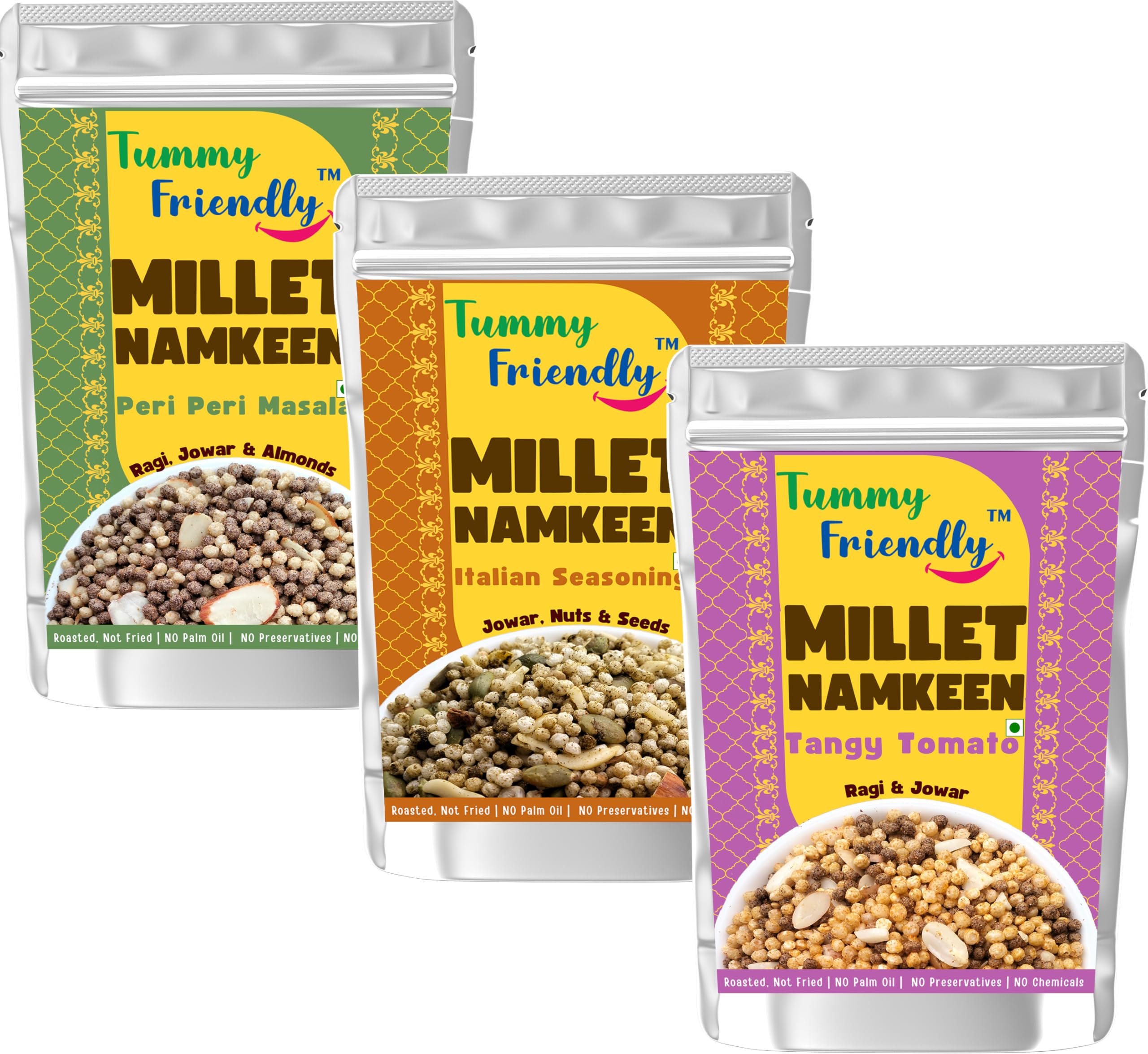 • TummyFriendly Millet Namkeen Mixture for Kids and Adults. Assorted Pack. Healthy Snacks for Kids and Adults. No Chemicals No Preservatives.