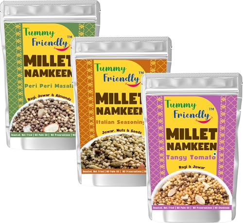 TummyFriendly Millet Namkeen Mixture for Kids and Adults.Healthy Snacks Items Namkeen for Kids, Adults, Pregnant Women, Diabetics. Healthy Snacks for Diabetics. No Chemicals, No Preservatives - Millet Snacks Pack of 3, 70g. Each (PeriPeri, Italian, Tangy-