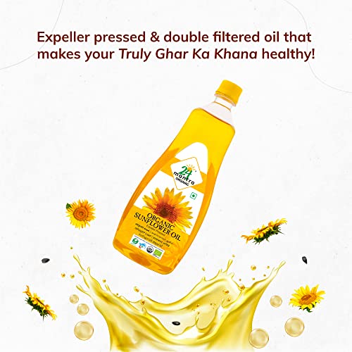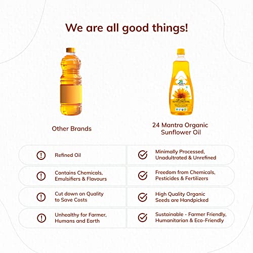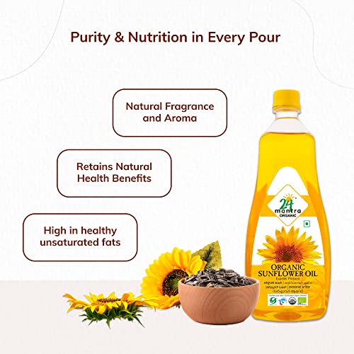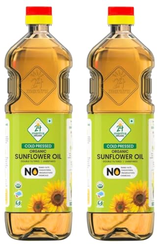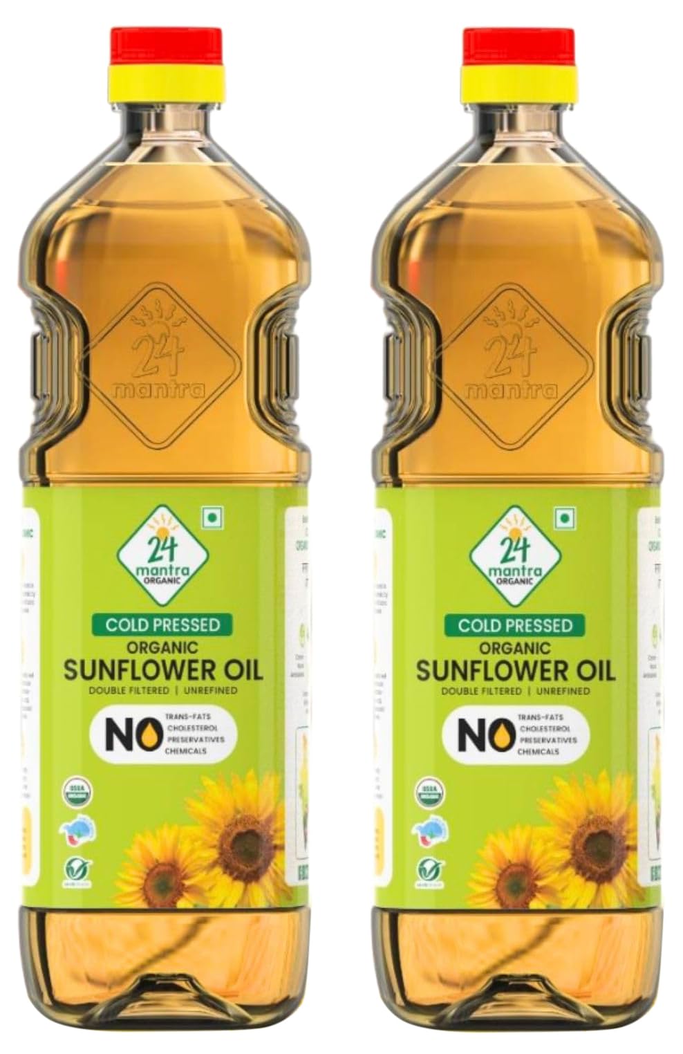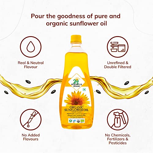 24 Mantra Organic Unrefined Sunflower Oil - 1 L | Pack of 2 | 100% Organic | Chemical Free & Pesticides Free | Double Filtered | Expeller Pressed