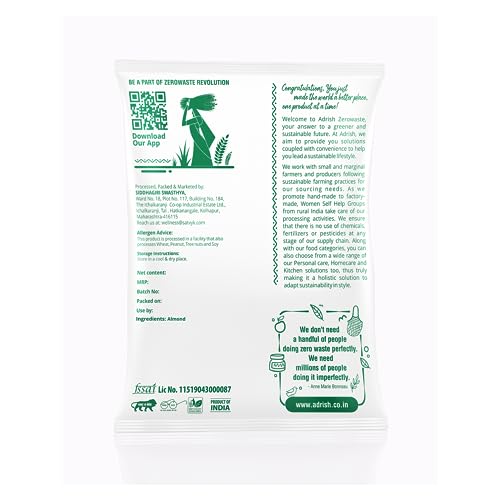 Adrish Zerowaste Organic Almonds Mamra (200g) - Special Mamra Badam Giri | Grade A ++ Nuts | Contains Natural Oils | Good Source of Vitamins, Magnesium & Protein | Crunchy | Non GMO | From Kashmir Valleys - Mamra Badam