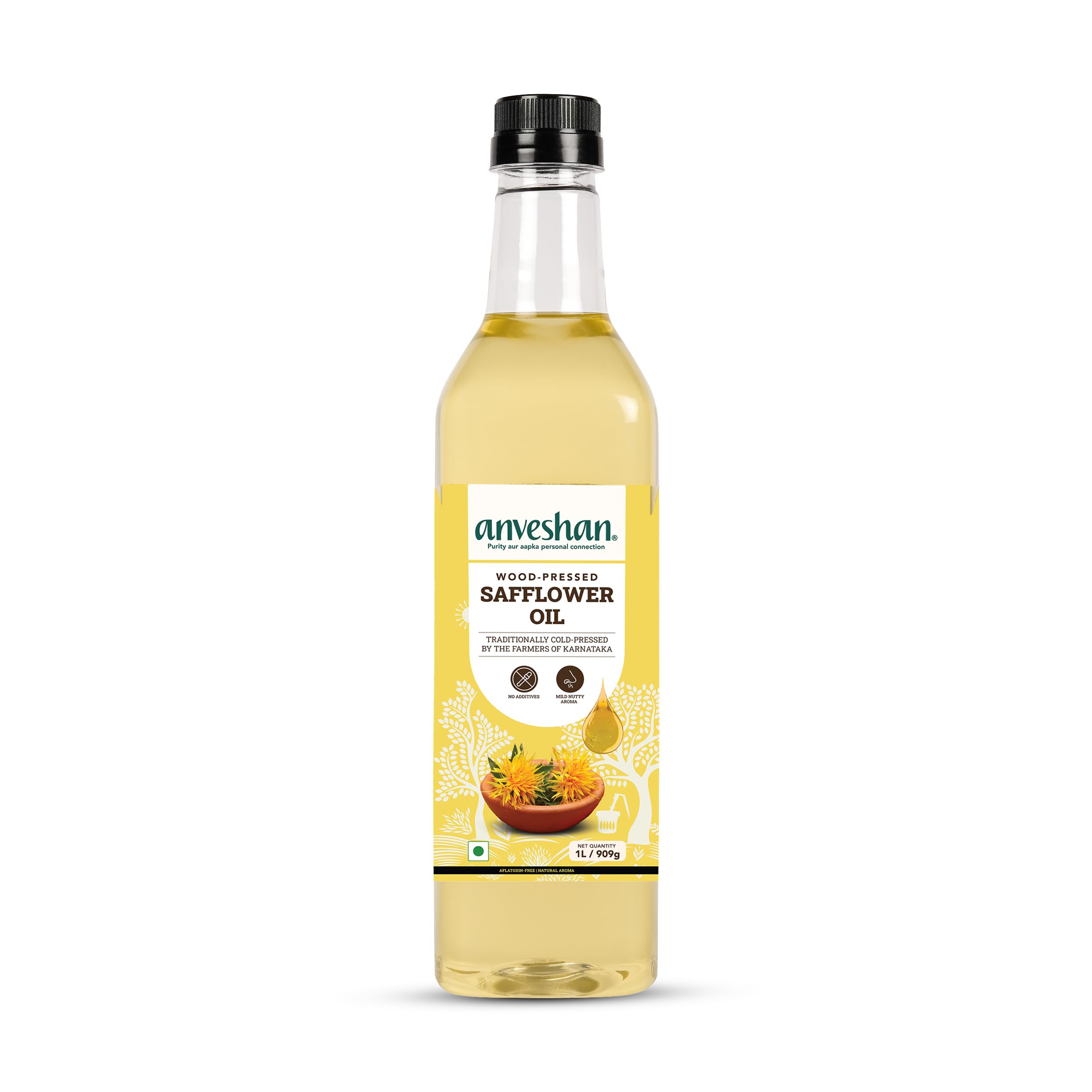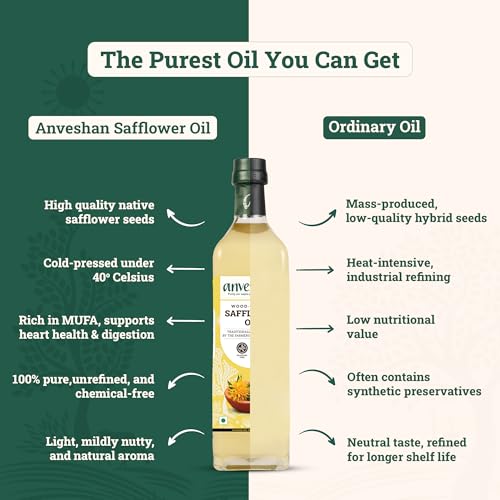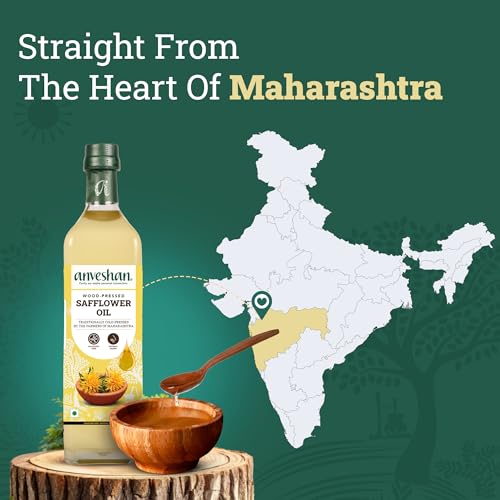 Anveshan Cold - Pressed Safflower Oil - 1L | Extracted on Wooden Churner | Safflower For Cooking With Multipurpose Usage | PET Bottle