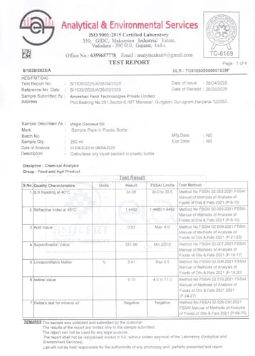 LAB-TESTED OIL: We comply with 16 FSSAI mandated parameters for testing our coconut oil and make sure that every batch undergoes strict quality checks.