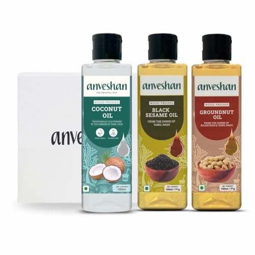 Anveshan Wood Cold Pressed Groudnut, Coconut and Sesame Oil - 100ML Pack of 3