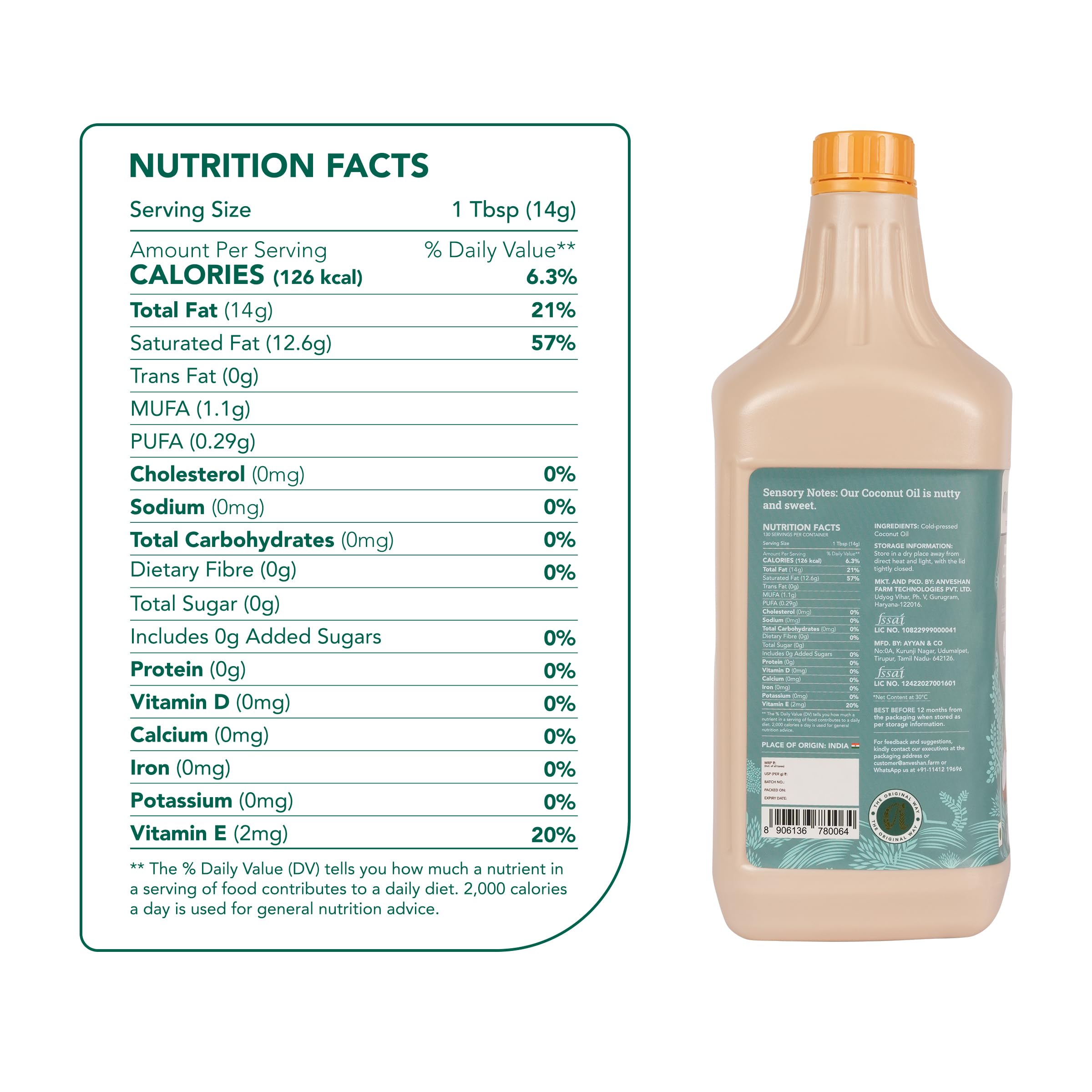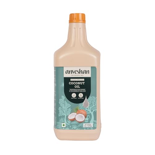 Anveshan Wood Pressed Coconut Oil - 2 Litre | Plastic Can | Kolhu/Kacchi Ghani/Chekku | Natural | Chemical-Free | Cold Pressed Coconut Oil for Cooking