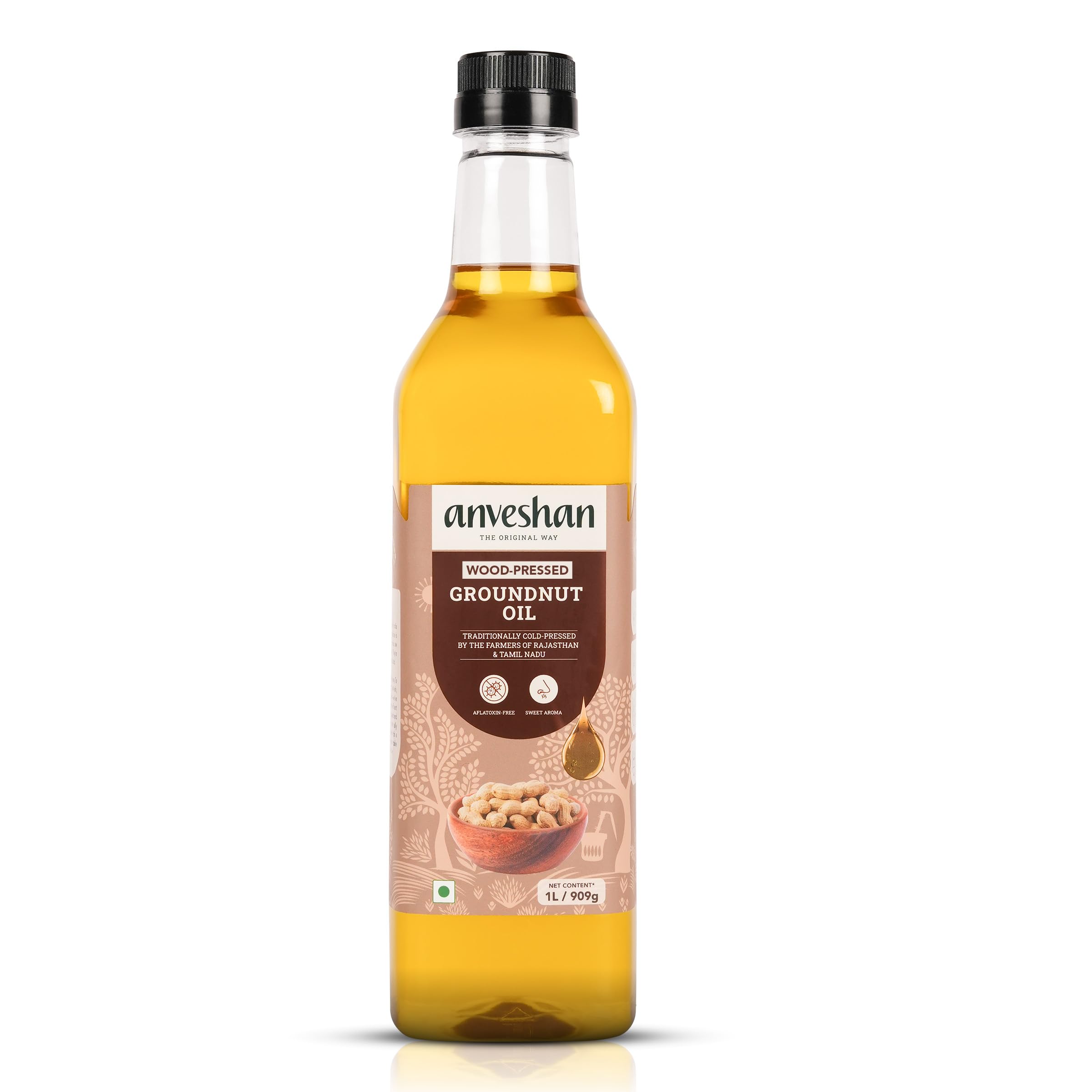 Anveshan Wood Pressed Groundnut Peanuts Oil 1 Litre | Plastic Bottle | Kolhu/Kacchi Ghani/Chekku/Ganuga | Peanut Oil | Natural | Chemical-Free | Cold Pressed Groundnut Oil for Cooking