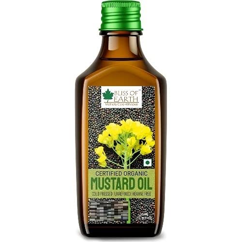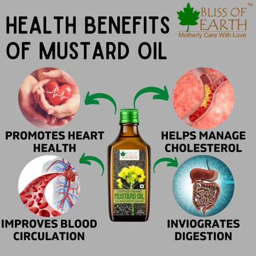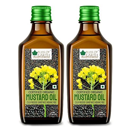 Bliss of Earth 2x500ML Certified Organic Mustard Oil For Cooking & Hair, Cold Pressed, Hexane Free (Pet bottle) Pack Of 2