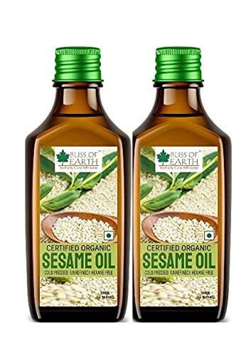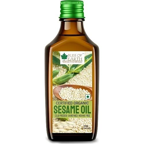 Bliss of Earth 2X500ml Certified Organic White Sesame Oil For Massage, Cooking & Eating, Cold Pressed & Hexane Free Pet bottle