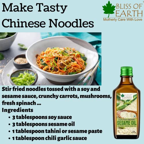 Bliss of Earth 2X500ml Certified Organic White Sesame Oil for Massage Cooking & Eating Cold Pressed