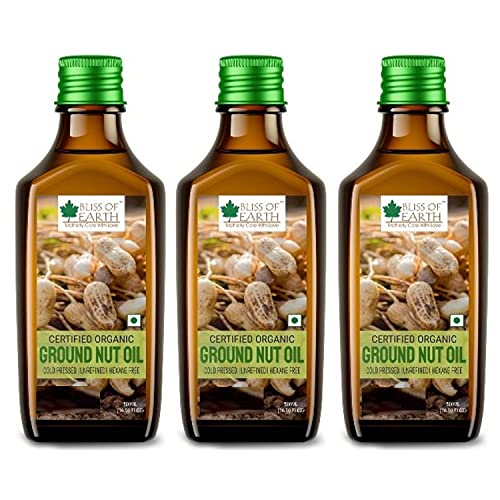 Bliss of Earth Organic Groundnut Oil is extracted by cold pressing of groundnuts without using hexane. It is rich in nutrients vitamins and poly-unsaturated fats. It is also effective in decreasing cholesterol and good for hormonal activities. Like other plant-based oils groundnut oil contains no cholesterol. Groundnut oil is sometimes applied directly to the skin for joint pain dry skin and other skin conditions.