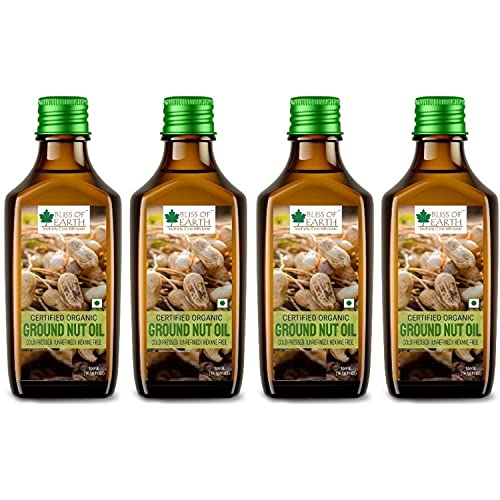 Bliss of Earth 4x500ML Certified Organic Groundnut Oil For Cooking, Cold Pressed, Hexane Free Pet bottle (Pack Of 4)