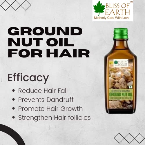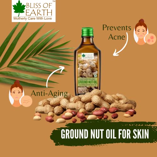 Bliss of Earth Organic Groundnut Oil is extracted by cold pressing of groundnuts without using hexane. It is rich in nutrients vitamins and poly-unsaturated fats. It is also effective in decreasing cholesterol and good for hormonal activities. Like other plant-based oils groundnut oil contains no cholesterol. Groundnut oil is sometimes applied directly to the skin for joint pain dry skin and other skin conditions.