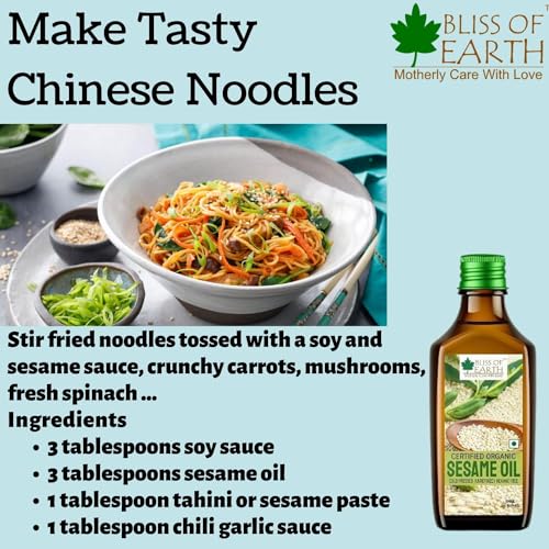 Bliss of Earth Certified Organic Sesame Oil is extracted by cold pressing of sesame seeds without using hexane. Its a good source of nutrients that helps to preserves bone health and has high level of anti-oxidants.