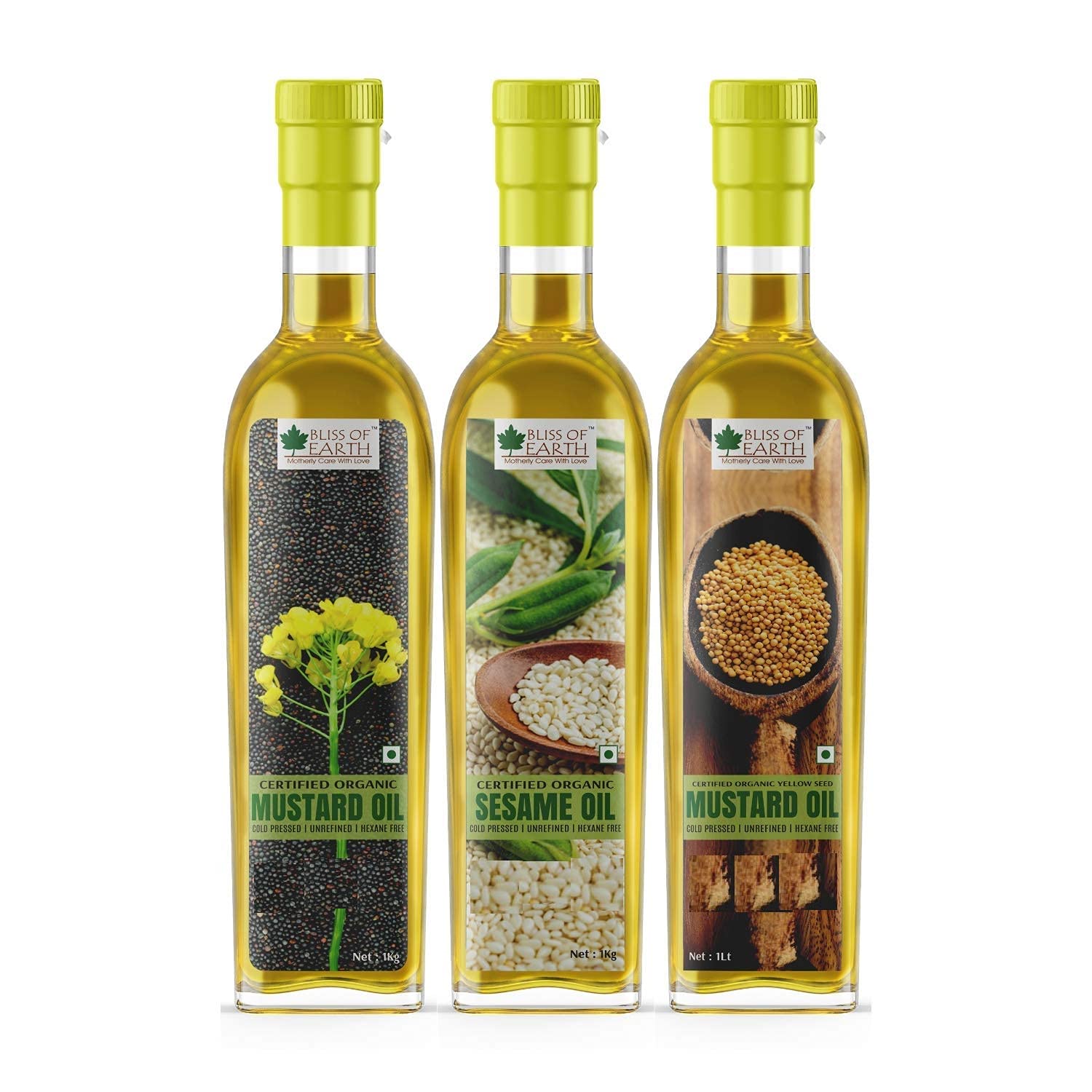 Bliss of Earth Combo Of Organic Mustard Oil, Sesame Oil And Yellow Mustard Oil Cold Pressed For Cooking (1 Ltr Each) Pack Of 3