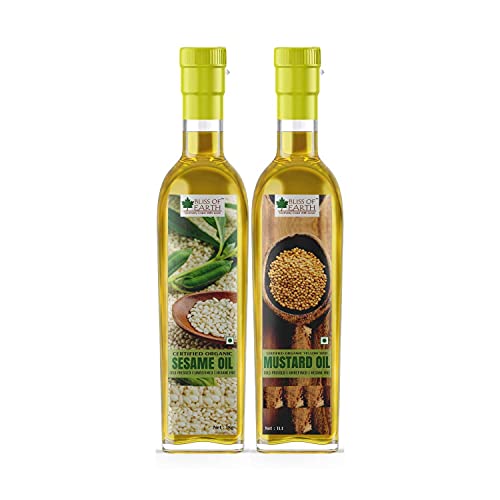 HomeGroceryCookingCold Pressed OilsBliss of Earth Combo Of Organic White Sesame Oil And Yellow mustard Oil For Massage, Cooking & Eating, Cold Pressed & Hexane Free Pack Of 2