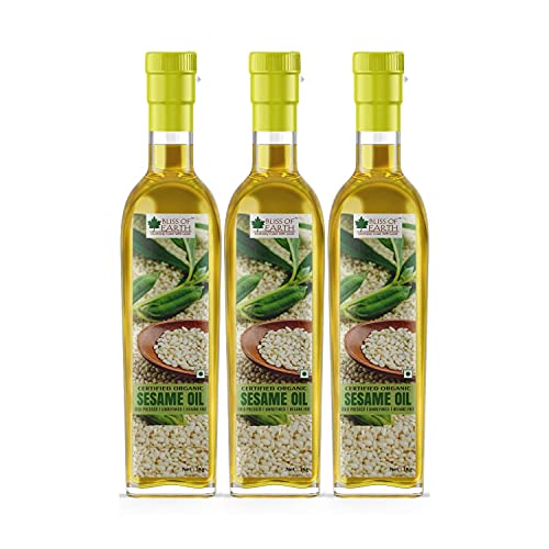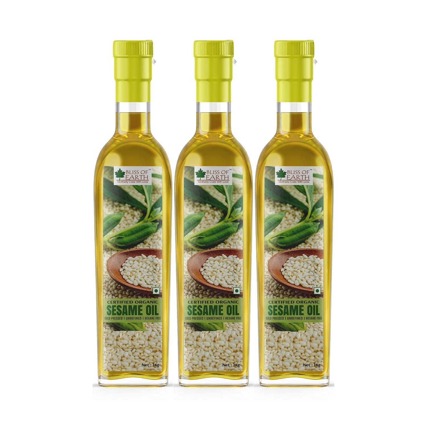 Bliss of Earth Organic White Sesame Oil 3x1 Ltr For Massage, Cooking & Eating, Cold Pressed & Hexane Free