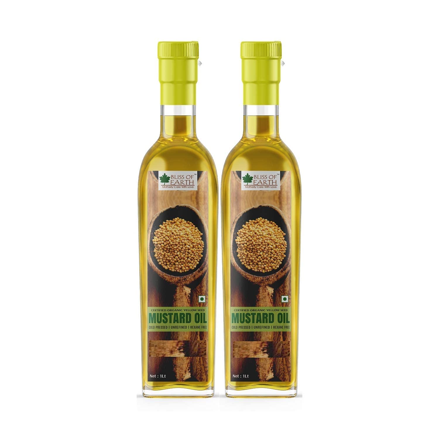 Bliss of Earth Organic Yellow Mustard Oil 2x1 ltr Cold Pressed For Cooking Combo Pack Of 2