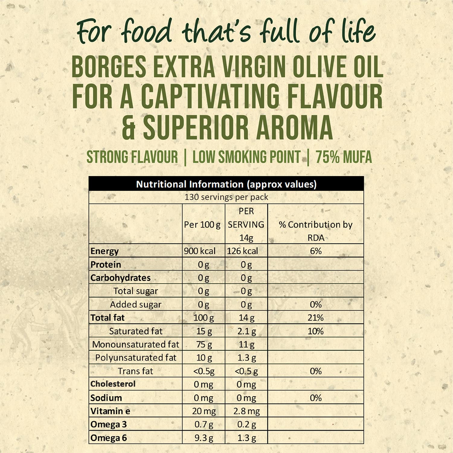 From a special selection of the highest quality olives cultivated under the Mediterranean sun with all their original taste and aroma. Obtained from Pressing of Olives Borges Extra Virgin Olive Oil has an intense flavour and aroma and is an excellent healthier substitute to butter.