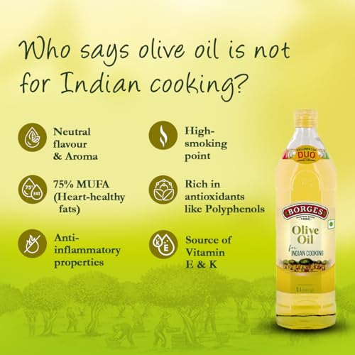 Product Description Borges belongs to the Mediterranean region. Mediterranean diet is considered to be one of the healthiest diets in the world and olive oil is an important ingredient in it. Borges launched its world famous olive oils in India with an aim to introduce Indian consumers to the fact that various variants of olive oil are relevant for their kitchens as well. World-renowned brand which is recognized as a leader in oils and vinegars. An extensive international network; presence in over 105 countries. Guaranteed Quality and Traceability of our products. From the Manufacturer FeaturesLight flavor with high smoking point. Perfect for Indian cooking. Borges extra light olive oil is made of tiny exquisite olives to give you the purest and most authentic flavour. It can be used for frying roasting and baking.UsageDal and VegetablesPulaoDosaAny Indian Dishview largerAbout the brandBorges belongs to the Mediterranean region; Mediterranean diet is considered to be one of the healthiest diets in the world and olive oil is an important ingredient in it. Borges launched its world famous olive oils in India with an aim to introduce Indian consumers to the fact that various variants of olive oil are relevant for their kitchens as well.World-renowned brand which is recognized as a leader in oils and vinegarsAn extensive international network; presence in over 105 countriesGuaranteed Quality and Traceability of our products