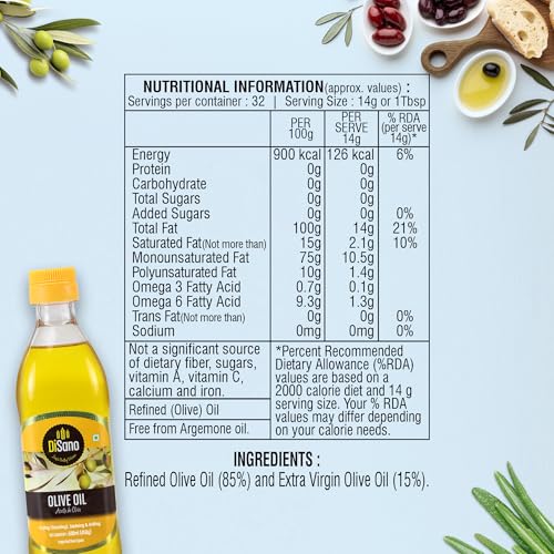 Refined Olive Oil (85%) and Extra Virgin Olive Oil (15%).