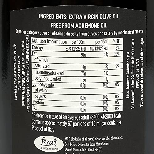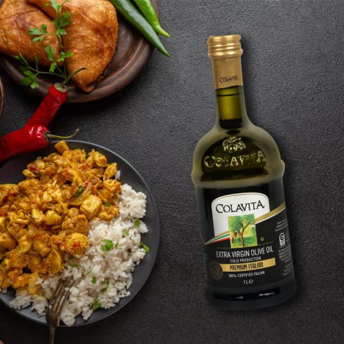 Colavita Extra Virgin Olive Oil (1L) | MATURE ITALIAN (less than 12 months old) | Cold Pressed Oil from Italian grown Olives | Premium Olive Oil for Cooking Dips and Marinades | Timeless Bottle Pack