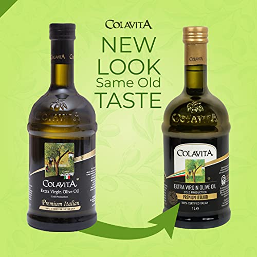 Colavita Extra Virgin Olive Oil (1L) | MATURE ITALIAN (less than 12 months old) | Cold Pressed Oil from Italian grown Olives | Timeless Bottle Pack