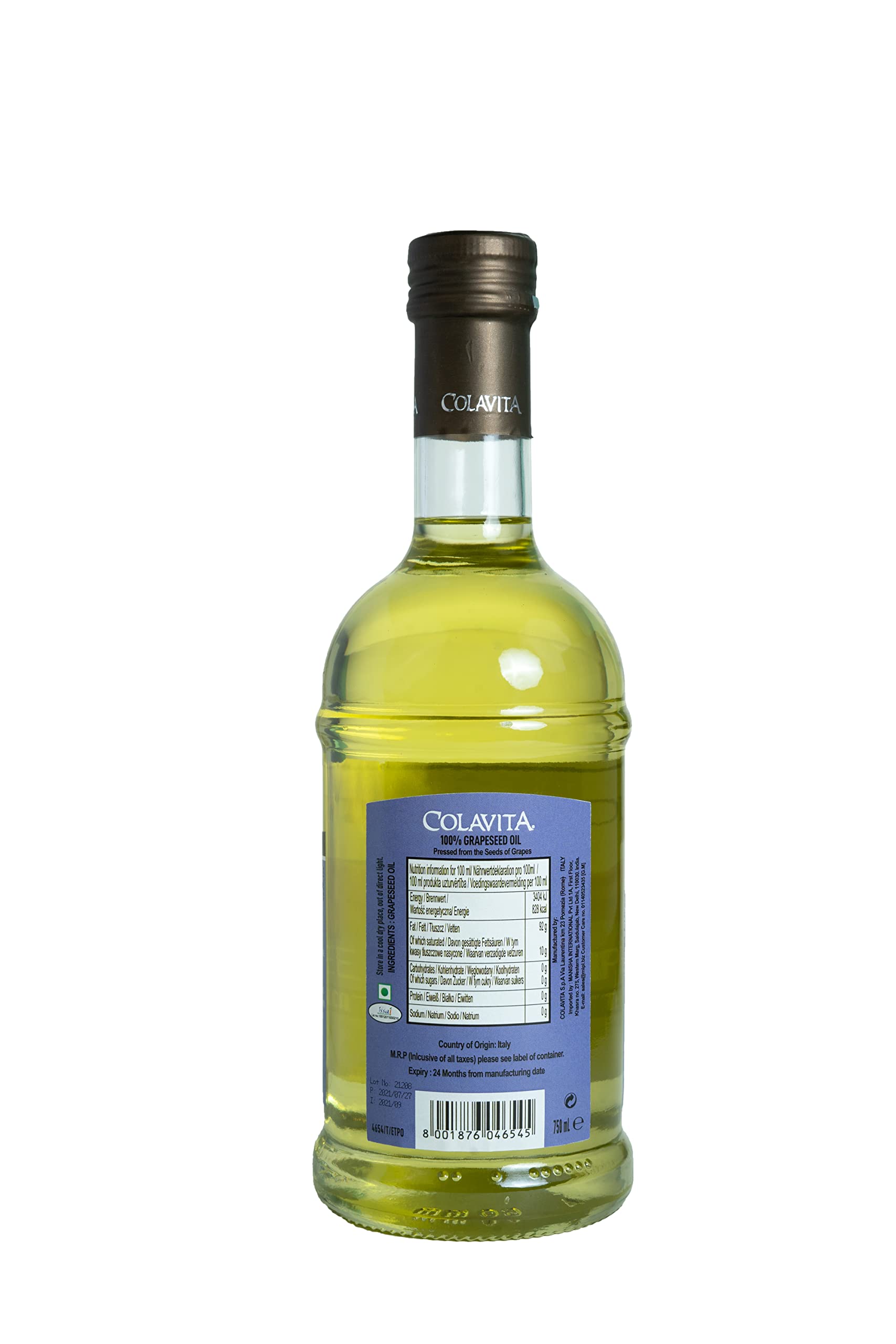 Colavita Grapeseed Oil - 750ml || for Cooking, Baking, Skin Care, Hair Care & Skin Lightening ||