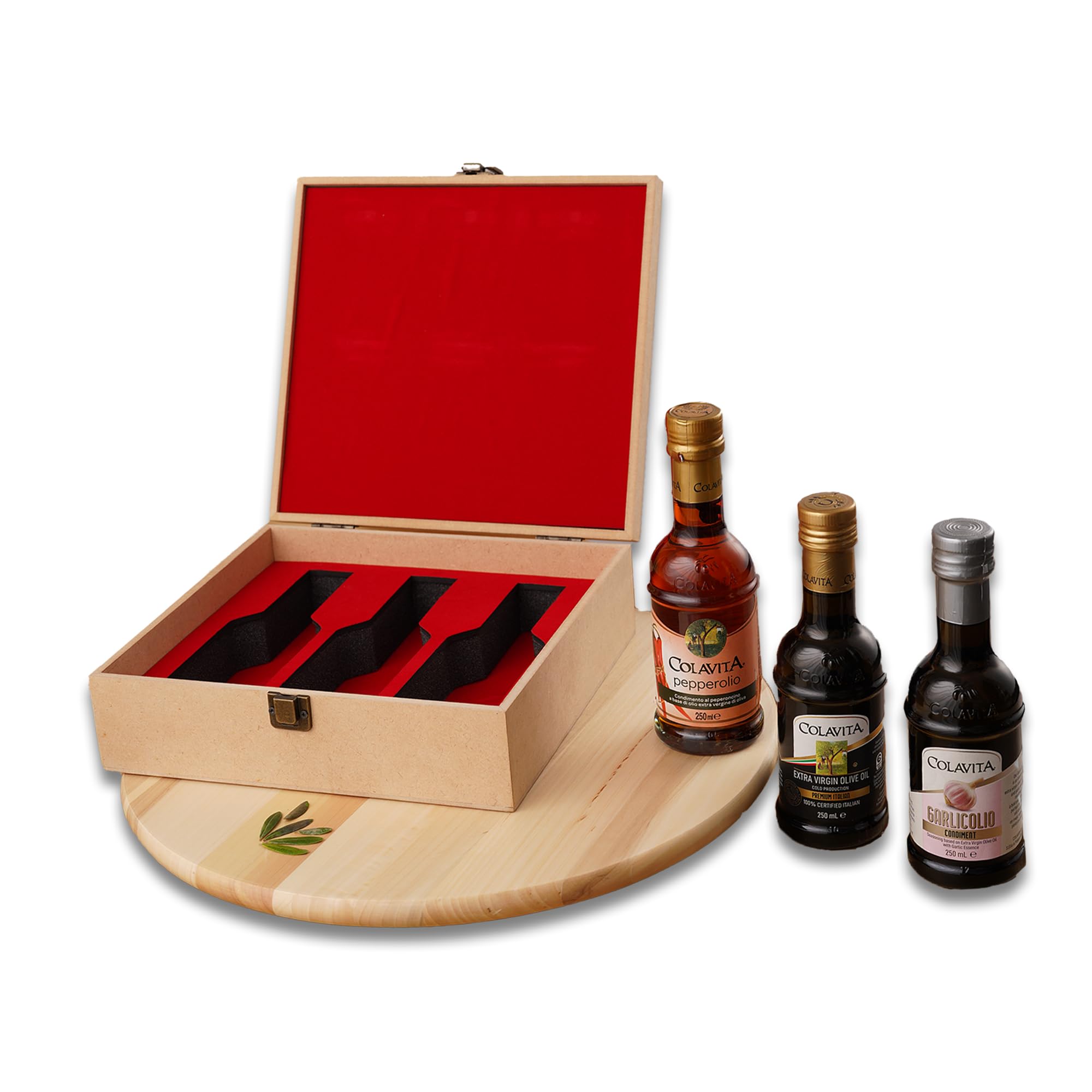 3 flavoured extra virgin olive oil: pepperolio garlicolio & Extra Virgin Olive oil- an infusion of fragrant garlic essence provides a boldly flavourful note to Colavita extra virgin olive oil. Perfect as an enticing dipping sauce for bread Colavita garlicolio also complements meat vegetable potato pasta and risotto dishes. Cold pressed using olives grown and harvested exclusively from the finest groves throughout Europe before blending with essence of garlic cholesterol and carbohydrate free product perfect as an enticing dipping sauce for bread and serves as an excellent complement to meat vegetable potato pasta and risotto dishes store in a cool dry place out of direct light imported from Italy Colavita pepperolio is a flavoured extra virgin olive oil infused with red chili peppers. Colavita extra virgin olive oil takes on a fiery flavour. Pepperolio imparts bold spicy flair to marinades soups and recipes that call for sautéing or grilling.