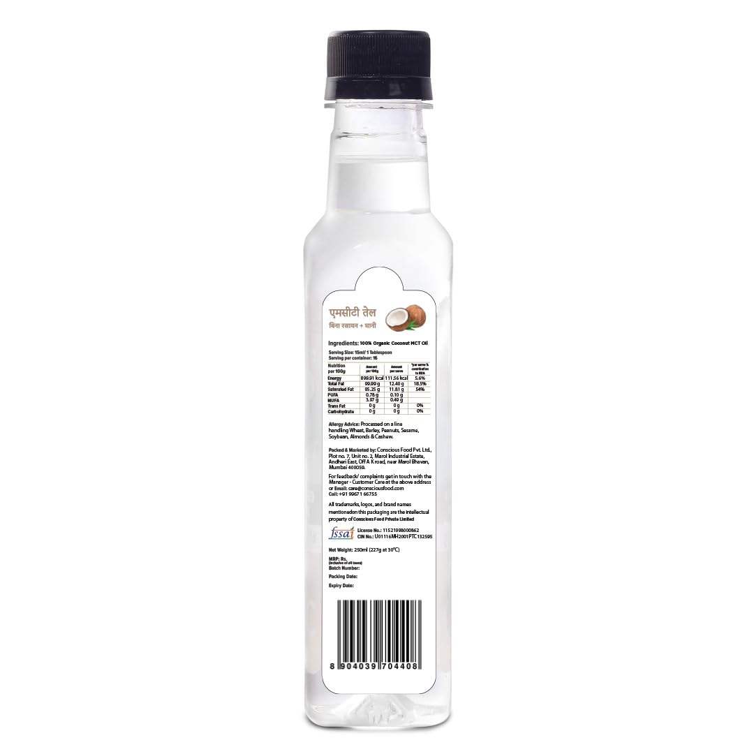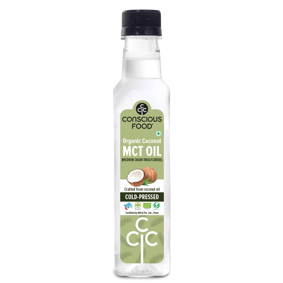 Our Organic MCT Oil or Medium-Chain Triglyceride oil is a dietary supplement that is considered as a biologically inert source of energy. It helps in excess calorie burning reduces visceral fat thus promotes weight loss. Regular use of MCT Oil can help in skin and hair nourishment and promote gut health.
