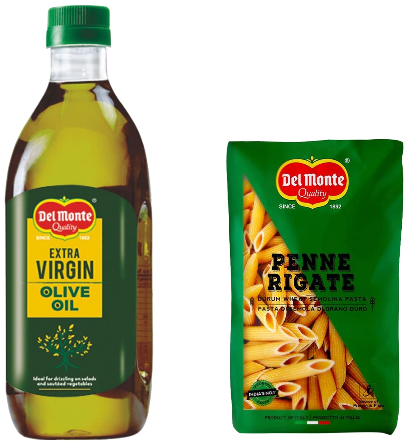 Delmonte Del Monte Extra Virgin Olive Oil PET 1LDel monte olive oil is 100 percent italian. Delmonte olive oil is distinguished by its colour and subtle taste is perfect for frying sauting roasting or baking absorbing the natural flavours of the food.Del Monte Penne Rigate Pasta Durum Wheat (Imported) 500gDel Monte is the no. 1 Imported pasta brand in India (basis Nielsen retail audit 2015-16). Imported from one of the oldest and largest pasta manufacturers in Italy.